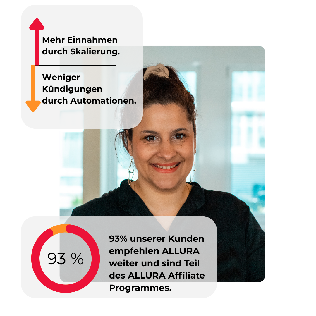 Vorweg: Dein Support den du bei ALLURA erhältst, ist auf deutsch. Wir stehen dir wöchentlich per Live Q&A Termin sowie Chat Support in deinem persönlichen Helpcenter von montags-freitags zur Verfügung*. Allen ALLURA Nutzern steht sofort nach Buchung ein Onboardingkurs bestehend aus 50+ Video zur Verfügung, um deine Software Step by Step einrichten zu können. Neben dem ALLURA Support kannst du natürlich noch weitere Supportdienste über unser Helpccenter in Anspruch nehmen und unseren E-Mailservice. Was uns komplett vom Markt abhebt: Dein regelmäßiger, persönlicher Sstem Setup Call mit unserem Team.